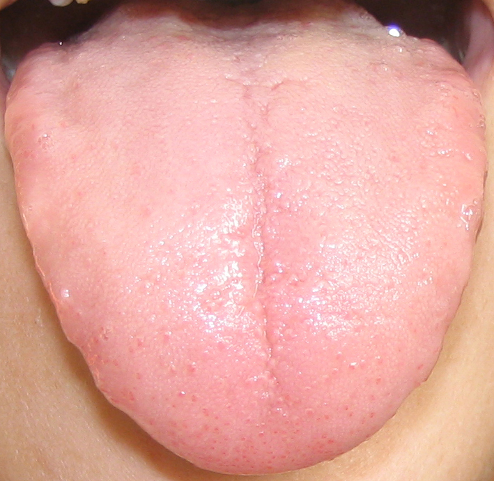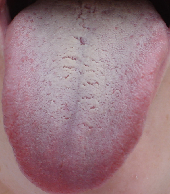 Krátký a bledý a vlhký jazyk ukazuje na vnitřní chlad NEI HAN.