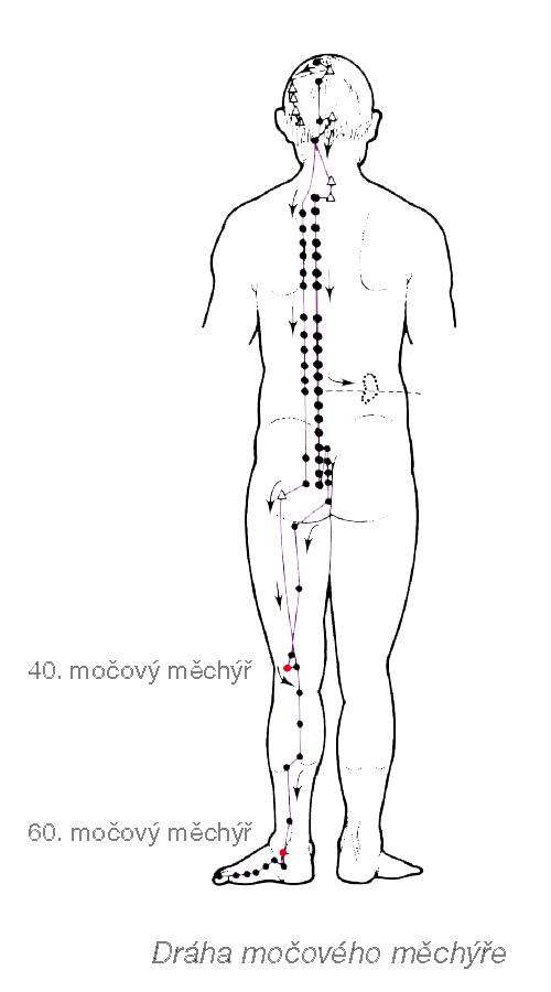 Zlatým hřebem léčby (a rozhodně i hřebíčkem do pomyslné rakve bolesti) je dle čínské medicíny v tomto akutním případě akupunktura. Kdo nevěří na akupunkturu a postihne ho bolestivý houser, tak se stane obvykle po několika akupunkturních ošetřeních nadšeným propagátorem této metody - až tak moc je zde akupunktura účinná, ba nejúčinnější metoda a je lékem první volby. Vždy je třeba napíchnout body vzdálené, které rozprouďují blokádu krve YU XUE, uvolňují svalovou tenzi a utišují bolest a to vše v bederní oblasti: k takovým bodům patří především 40. a 60. bod močového měchýře a 34. bod žlučníku, které napichujeme rozptylovací (disperzní) technikou. Další body lokální se vybírají dle postižení bolestivé oblasti, které se doporučují napichovat metodou tzv. horké jehly (prohřátí jehel moxovou cigaretou z pelyňku) anebo jen prohřátí bolestivých míst na zádech samotnou moxou, neboť v tomto případě se jedná o vyloučení škodlivého chladného větru FENG HAN z postižených míst a utišení bolesti. | ![]() |