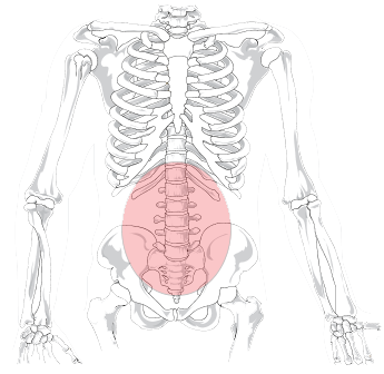Červená oblast značí místa nejčastějšího postižení bolesti při lumbágu: