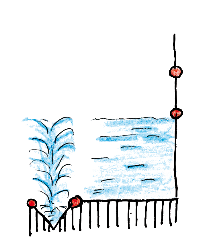 Stavidla jsou vytažena do optimální spodní hladiny (díky esenci ledvin SHEN JING), voda hojně vytéká (krev XUE) a pramen vody se regeneruje (esence ledvin SHEN JING).